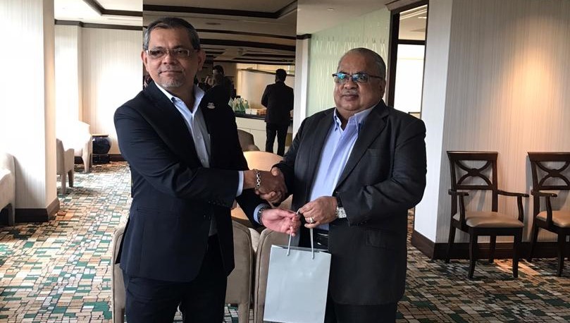 Mr Abd Rahman Abdullah handing over gift to Dato Seri Akhil Bulat as a token of appreciation